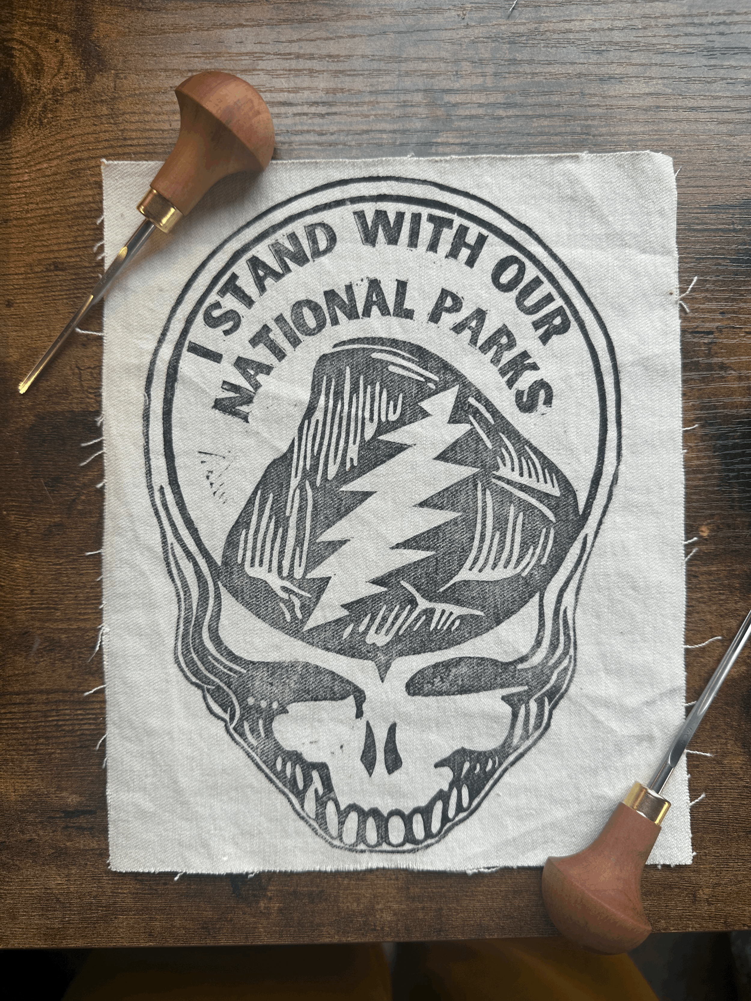 “ MEADOW WITCHES OF TUOLUMNE” Cathedral peak , Yosemite patch ! $8.00 Steel Head " I STAND WITH OUR NATIONAL PARKS" Patch ! $7.00 SMOKEY THE DANCING BEAR PATCH $5.00